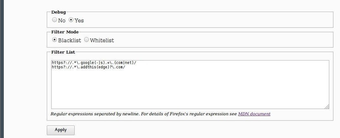 Med versionav Simple Blocker kan användare enkelt växla mellan de två filterlägena: svartlista blockerar alla URL:er som matchar de angivna reguljära uttrycken, medan vitlistan blockerar allt som inte matchar. Funktionen för att aktivera debug-läge gör det möjligt att se blockerade URL:er direkt i webbläsarens konsol, vilket underlättar för användare som vill finjustera sina inställningar och öka sin surfskydd.